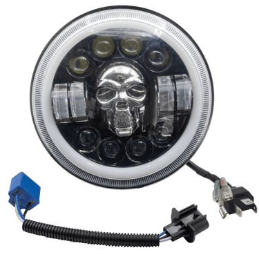 FARO REDONDO DE LED PARA MOTOCICLETA, MEDIDA 7”, LENTE OPTICO, ARO DE LUZ DIURNA AMBAR/BLANCO, 12V