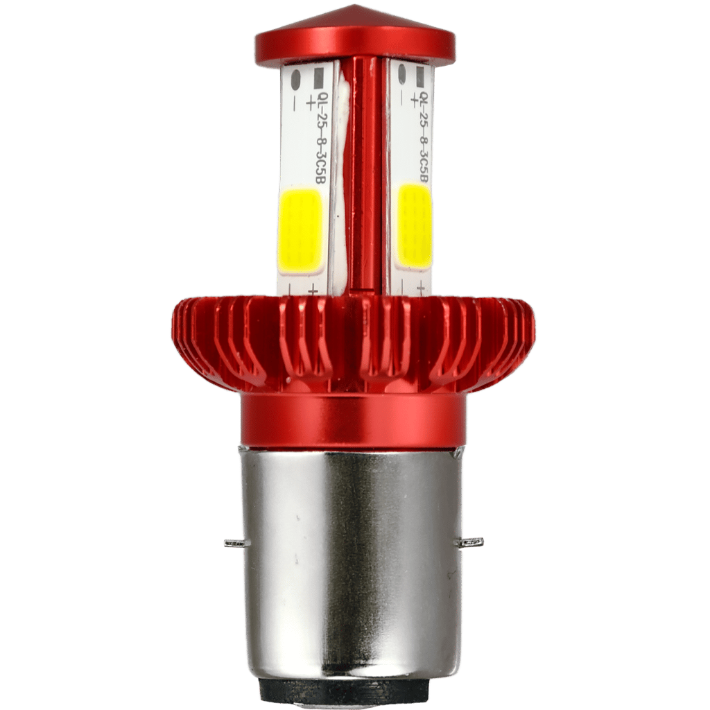 FOCO LED BA20D PARA MOTOCICLETA, 4 LADOS, 12 VOLTS, 32 WATTS, LUZ ALTA/BAJA, 2000LM COLOR ROJO