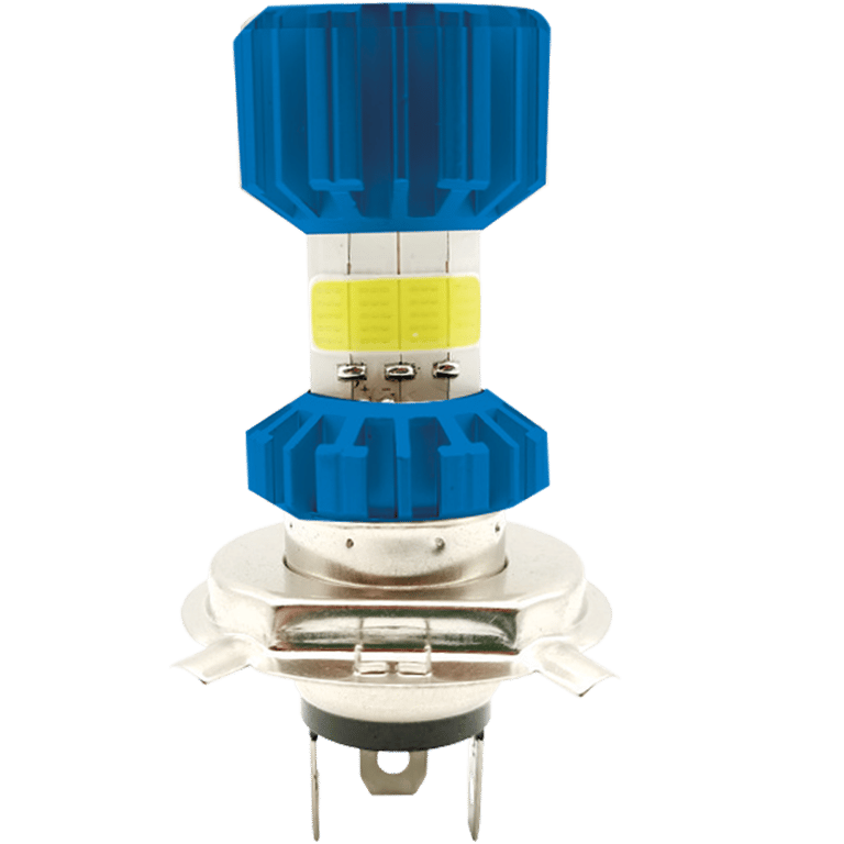 FOCO LED H4 PARA MOTOCICLETA, 8 LADOS, 12-80 VOLTS, 32 WATTS, LUZ ALTA/BAJA, 6500K, COLOR AZUL