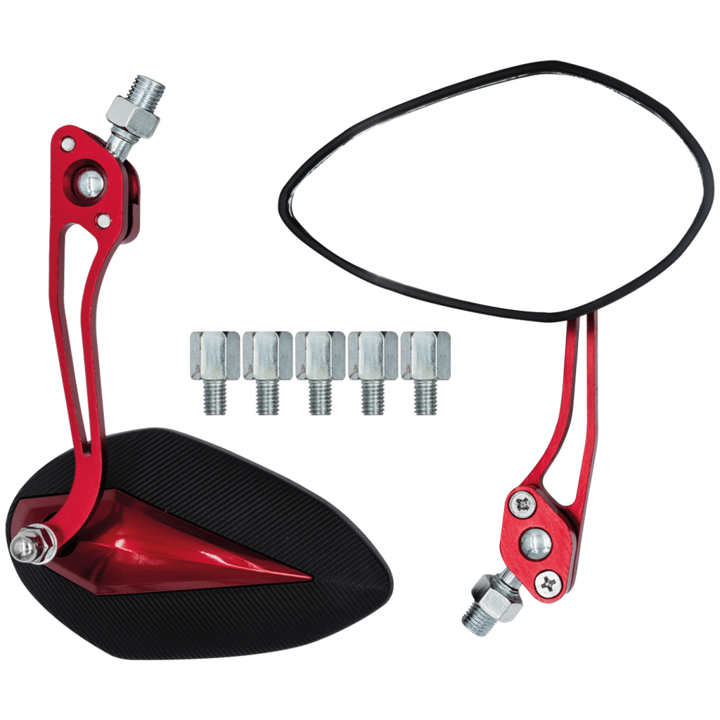 JUEGO DE ESPEJOS DE ALUMINIO NEGRO/ROJO PARA MOTOCICLETA 12X7 CM CON ADAPTADORES