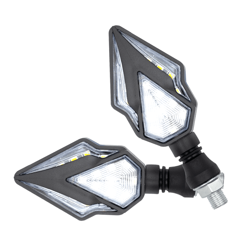 JUEGO DE LUZ DIRECCIONAL PARA MOTO LUZ AMBAR C/SECUENCIA, LUZ BLANCA DIURNA, 12 VOLTS, CARCASA NEGRA