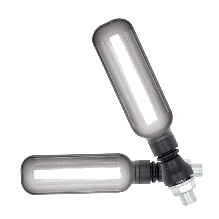 JUEGO DE LUZ DIRECCIONAL PARA MOTO LUZ AMBAR C/SECUENCIA, LUZ BLANCA DIURNA, 12 VOLTS, CARCASA NEGRA