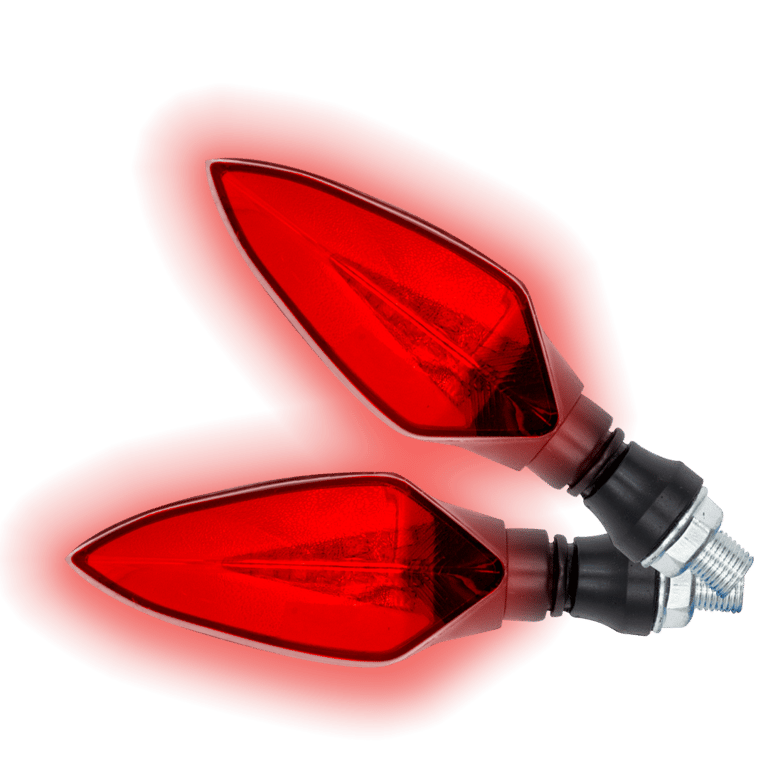 JUEGO DE LUZ DIRECCIONAL PARA MOTO LUZ AMBAR C/SECUENCIA, LUZ ROJA DIURNA, 12 VOLTS, CARCASA NEGRA